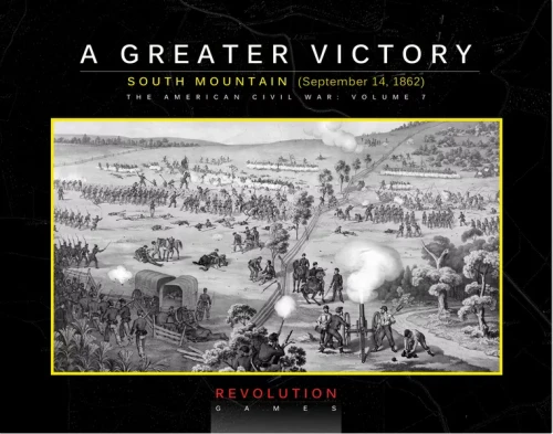 A Greater Victory is a game covering the key encounter at South Mountain on September 14th, 1862. It has been designed to be an historical yet readily playable regimental-scaled simulation of the twin conflict at Fox’s and Turner’s Gap. With two smaller, quick-play scenarios plus a comprehensive scenario covering the full day of action, the design offers flexible and tense situations for both players (also excellent for solitaire play). The Order-of-Battle has been researched to account for items like Confederate stragglers, offering a fresh perspective on the battle.