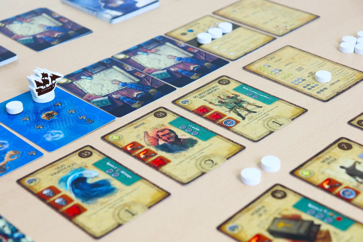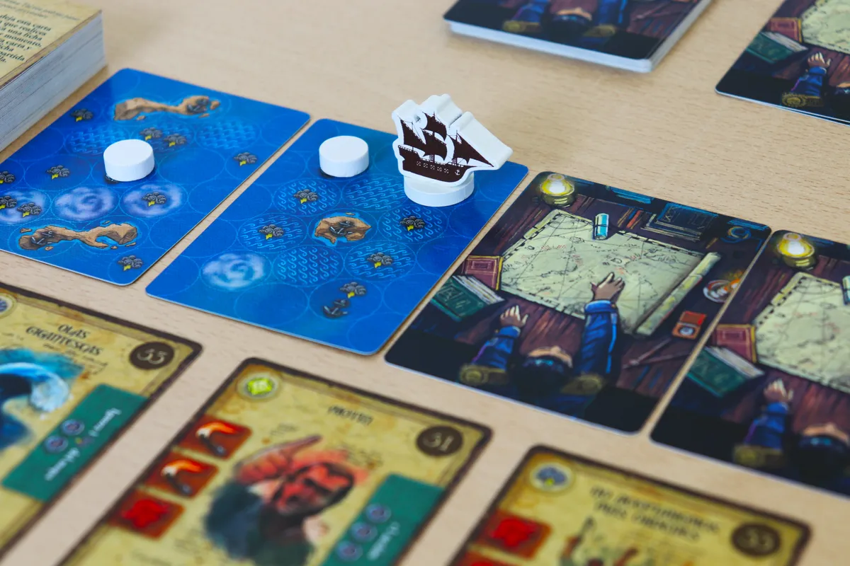 As the captain of a fleet during the Age of Discovery, you have been chosen by your king to explore uncharted lands and map the edges of the known world. Each game presents a new challenge where you’ll need to guide your crew with wisdom and resolve, all in service of your kingdom’s glory. Fierce winds and sudden storms will test your leadership, while the cards in your hand will help you maintain morale and steer your crew across the seas.