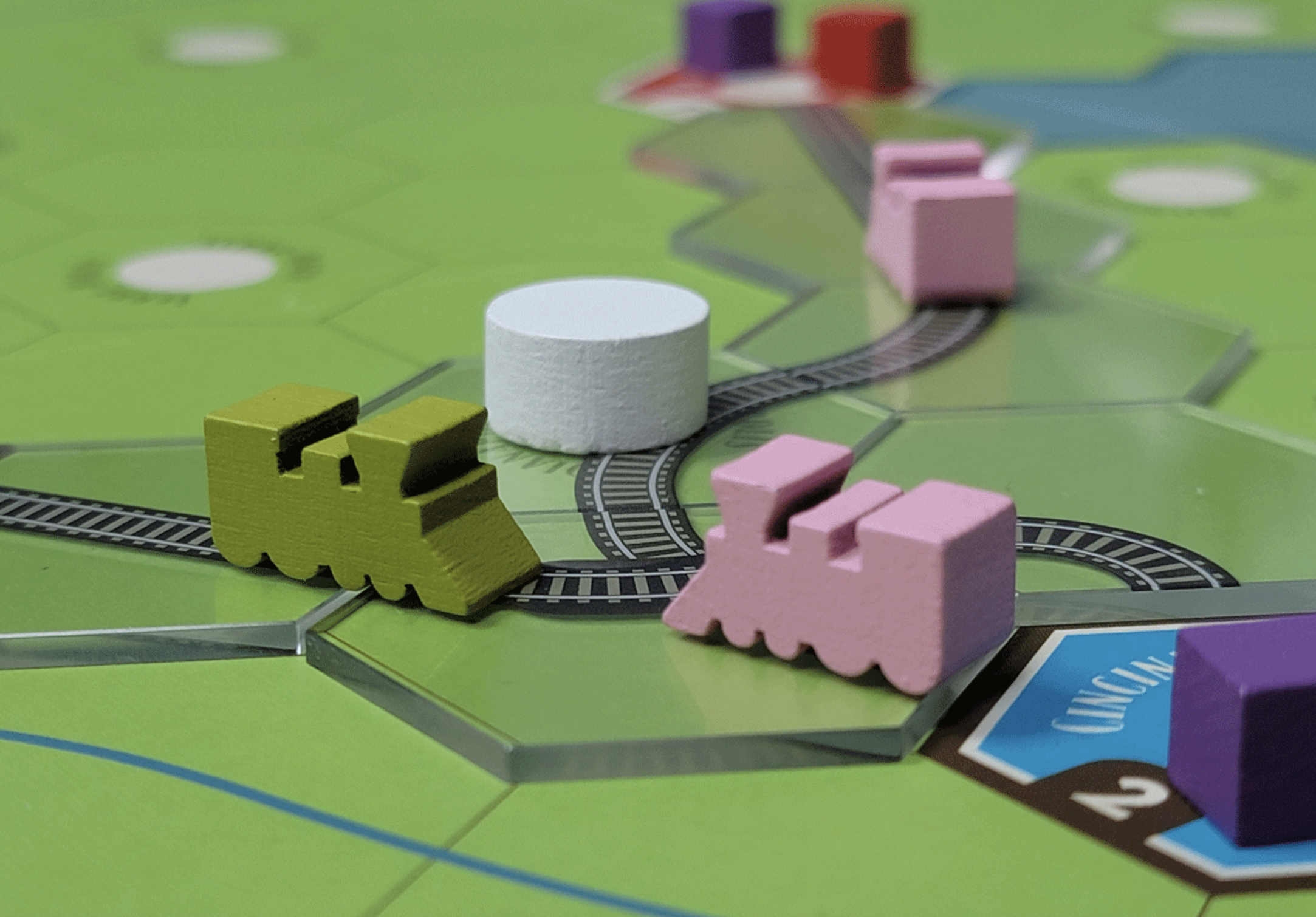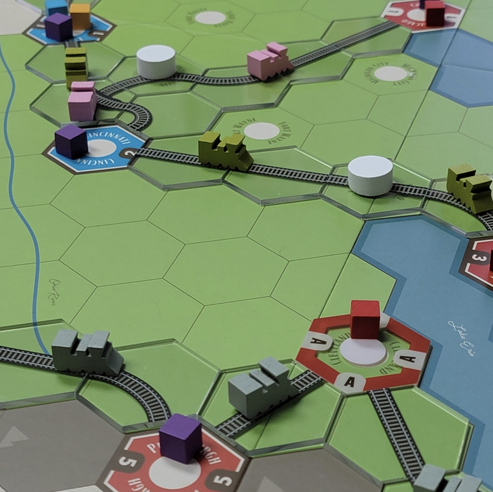 The Age of Steam Deluxe: Acrylic Tile Set includes transparent acrylic tiles for both track placement and new city placement. These allow you to see the board below each track tile for easier reading of the map. The set also includes the special track tiles needed for the Italy expansion.