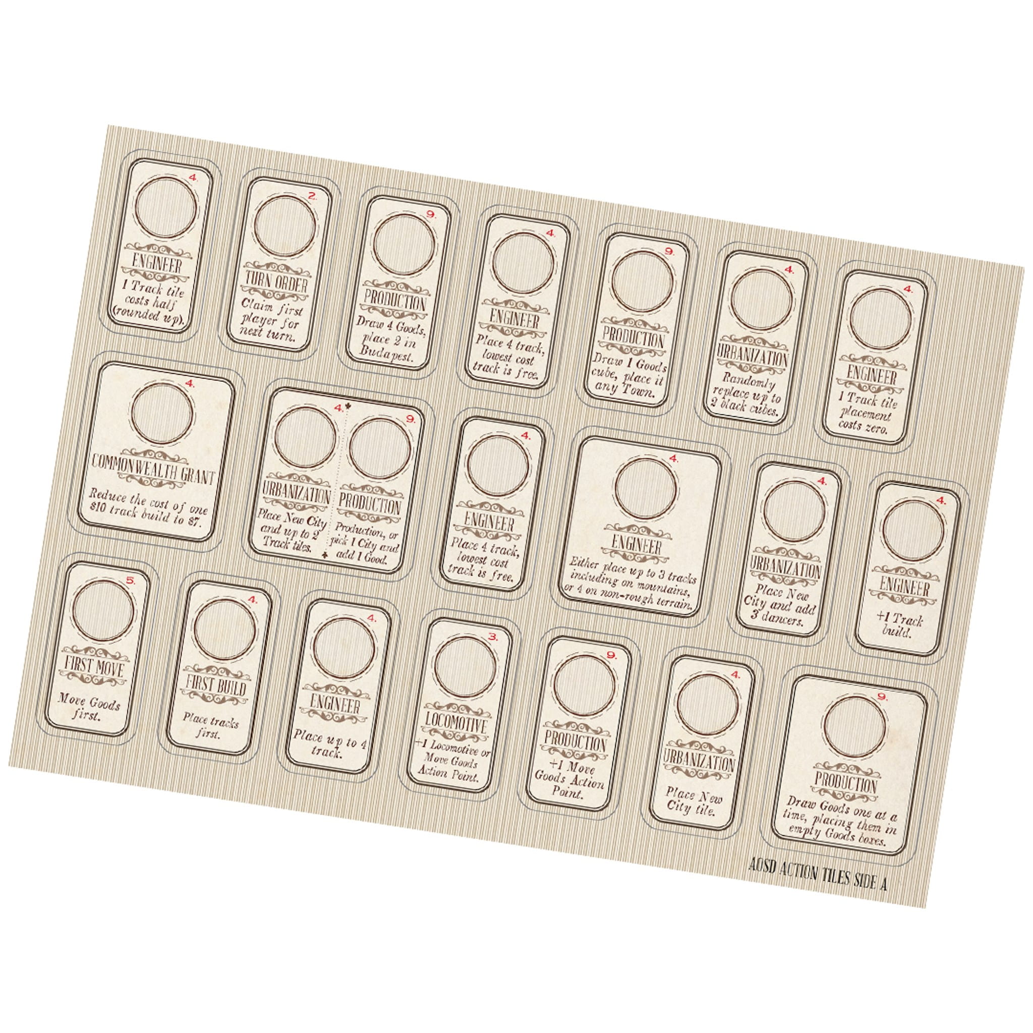 During the campaign, a backer suggested that we make additional Action tiles for actions that were modified for an expansion or additional actions not covered by the previous punchboards. We agreed that it was a great idea and compiled those actions to make those Action tiles available to you.