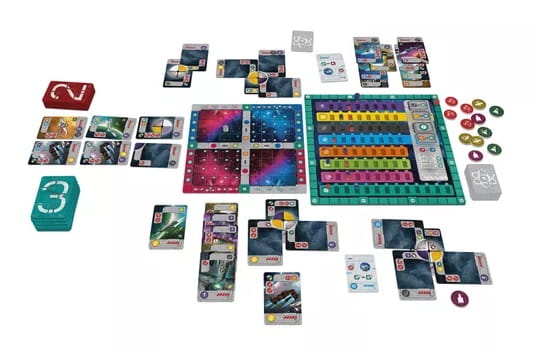 During the game, you obtain cards that represent planets, shuttles, mining stations, and colonized parts of planets. Planet building is one of the game's key mechanisms, and using it correctly can be a crucial winning strategy. By building a fleet of merchant, diplomatic, and battle ships, you gain influence in the explored universe — and in the laboratories, your scientists might discover new technologies that can turn the duel in your favor at the right moment.