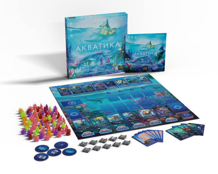 Coral Reefs perfectly complements the base game and its other Cold Waters expansion. It comes with several new modules with additional goals and mechanics, along with new components like coral reef miniatures and transparent reef cards.