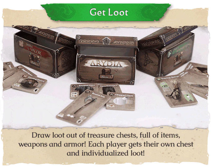 Arydia comes with 60+ pre-painted miniatures, 900+ cards, 300+ map cards, multi-layer worldmaps, multi-layer player boards, and 40+ hours of hand-crafted gameplay!