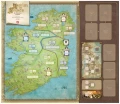 The game board shows a map of Ireland in the 5th century, with four Provinces-the same as today- but no counties yet. Wooden tiles represent the People, Druids, Chiefs, and Kings, and of course the High King at Tara. It is your job to break into the interrelated influences between these groups of people and get your new ideas accepted.