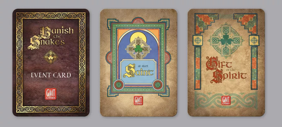 Each turn a card is drawn, throwing new challenges at your team. The severity of the event is determined by the previous card, and so no two games can ever play the same. The cards introduce events and ideas of the time, new saints, and historic figures- like Neil of the Nine Hostages.