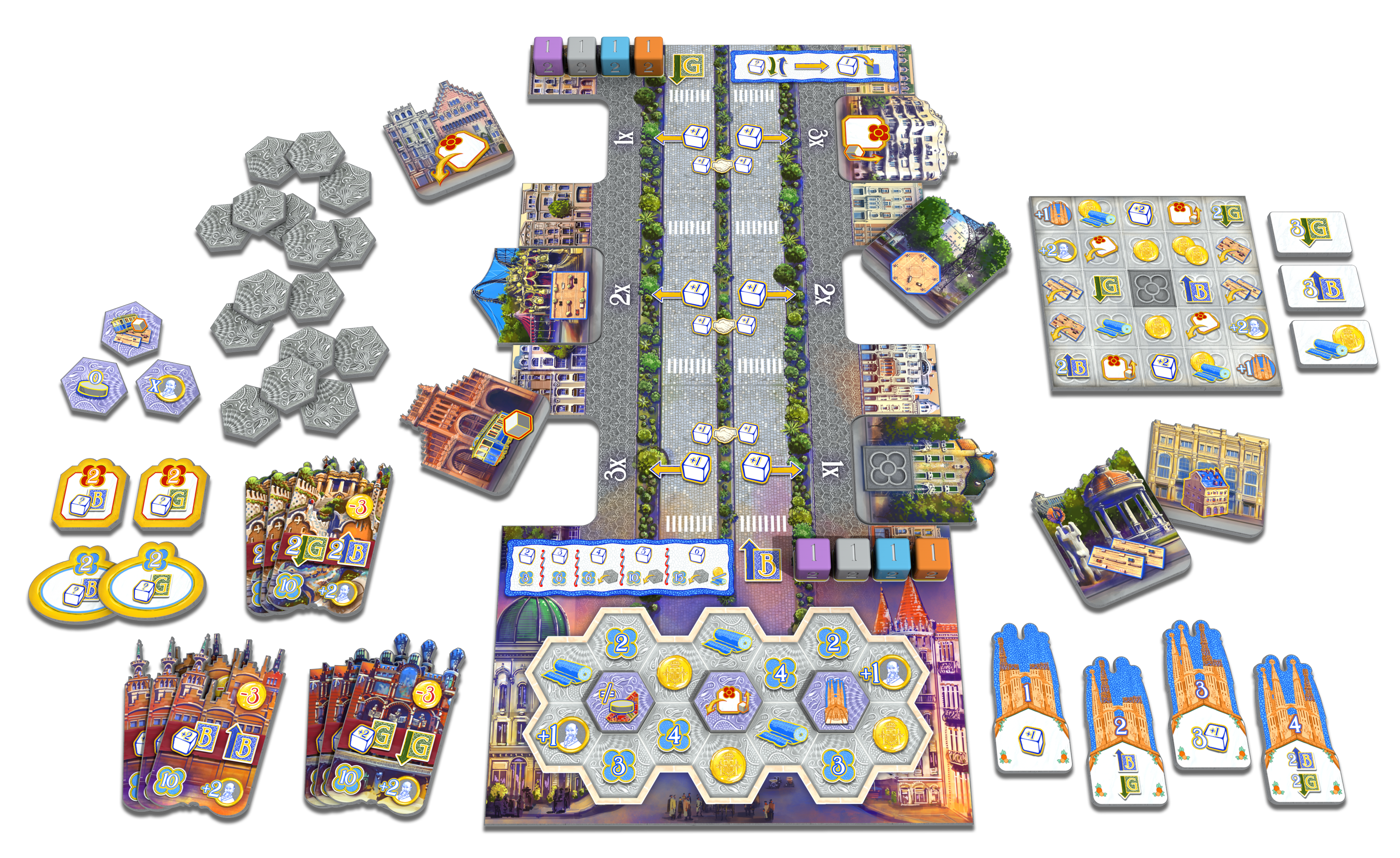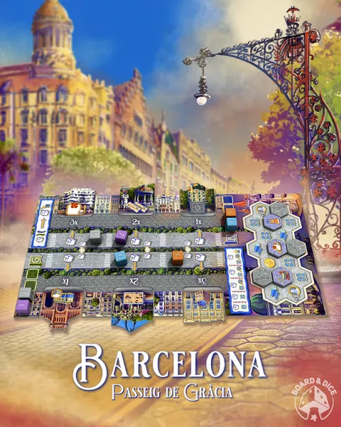 Barcelona: Passeig de Gràcia is an expansion for Barcelona and thus you need a copy of the base game to play it. The new elements brought by this expansion are Pedestrians who walk along the Passeig de Gràcia enjoying various amenities there. The more pleasant their walk, the bigger the rewards you gain once they reach their destination.