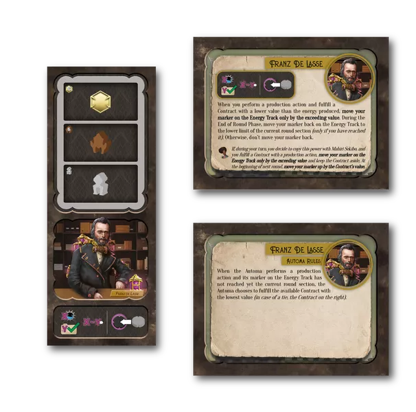 When you perform a production action and fulfill a Contract with a lower value than the energy produced, move your marker on the Energy Track only by the exceeding value.