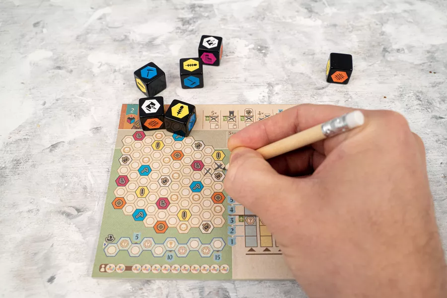 - Players are limited to the dice options on the table, and they must watch their opponent’s plans and routes carefully when drafting a die on their turn.