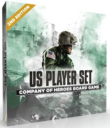 This Player Set includes all the components you need to play as the US in the Company of Heroes board game, such as a faction board, command cubes, dice, infantry trays, vehicles, tokens and cards. It also includes a rulebook that explains the US tech tree and special abilities.