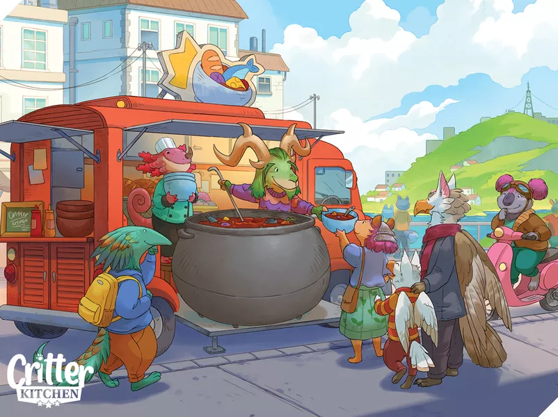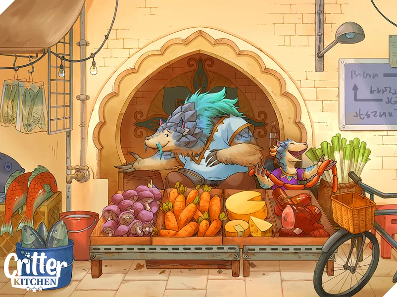It's Restaurant Week in Bistro Bay! Restaurants are competing in food challenges, while also planning an epic meal to impress a celebrity critic. As one of 1-5 players in Critter Kitchen, you'll send your chefs into the city to gather ingredients to create amazing meals and demonstrate that your restaurant is the best in town.