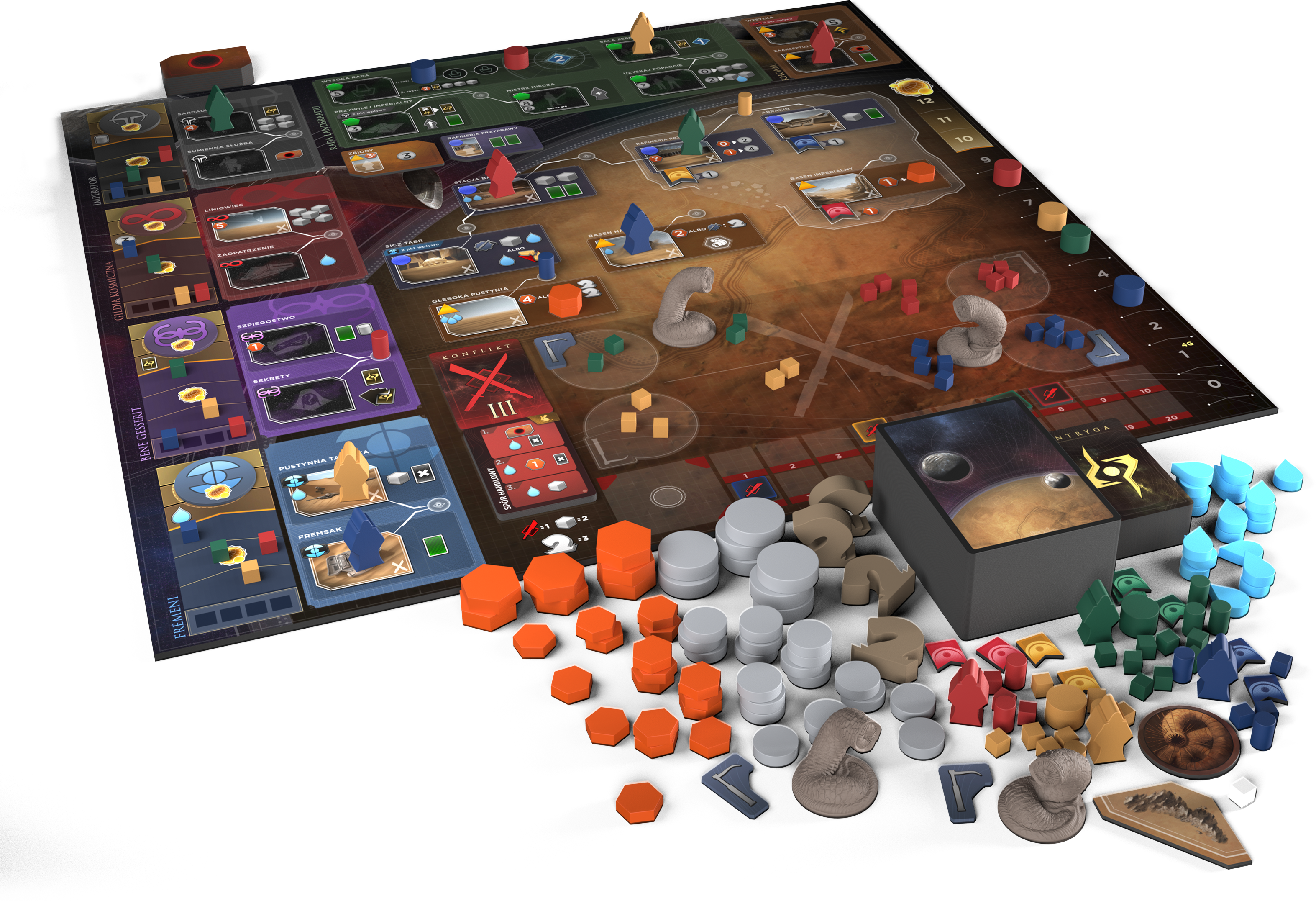 In Dune: Imperium Uprising, you want to continue to balance military might with political intrigue, wielding new tools in pursuit of victory. Spies will shore up your plans, vital contracts will expand your resources, or you can learn the ways of the Fremen and ride mighty sandworms into battle!