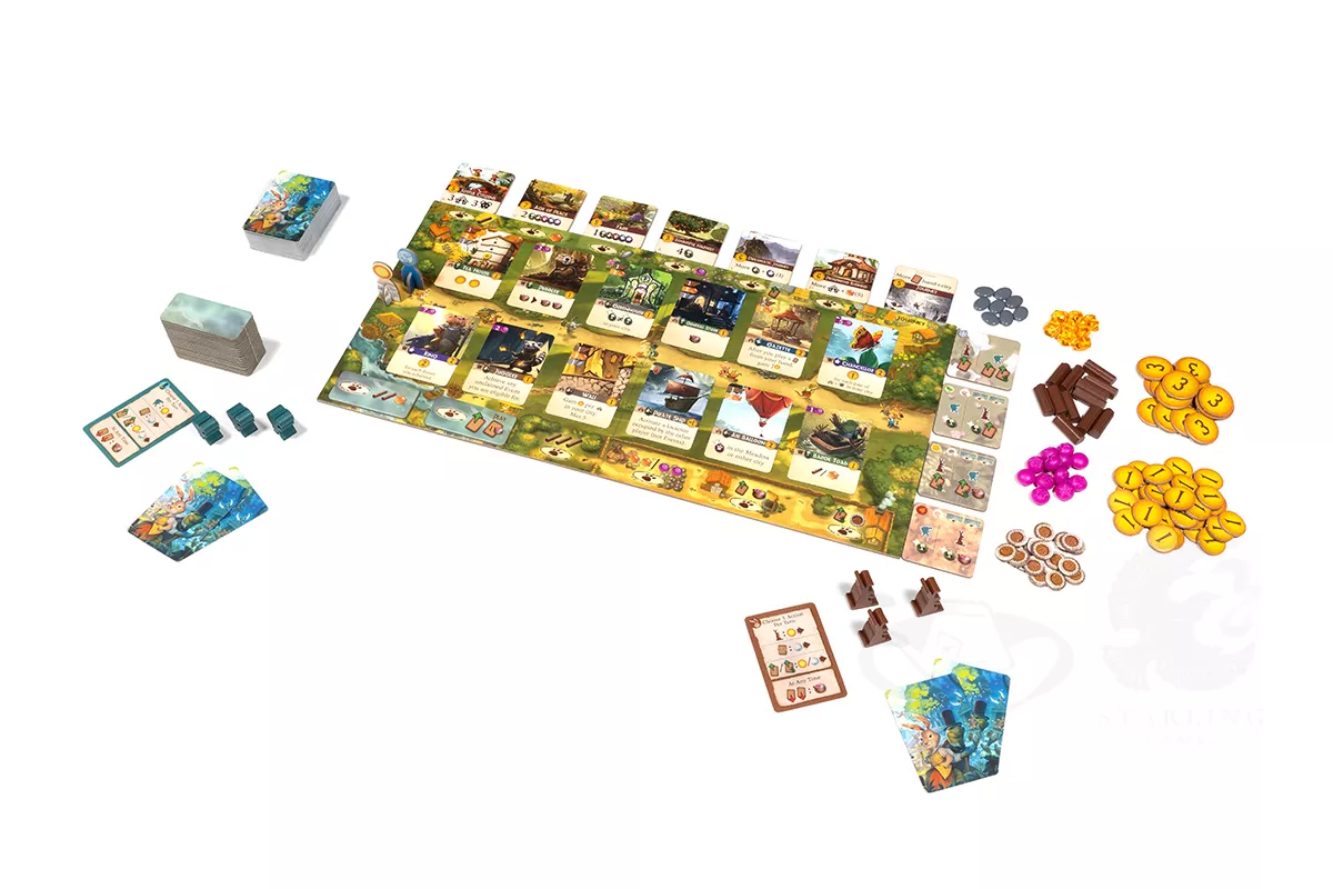 In Everdell Duo, you either compete against your single opponent or play co-operatively with another player to earn the most points. You accomplish this by placing workers to gather resources, then use those resources to play cards face up in front of you, creating your own woodland city.