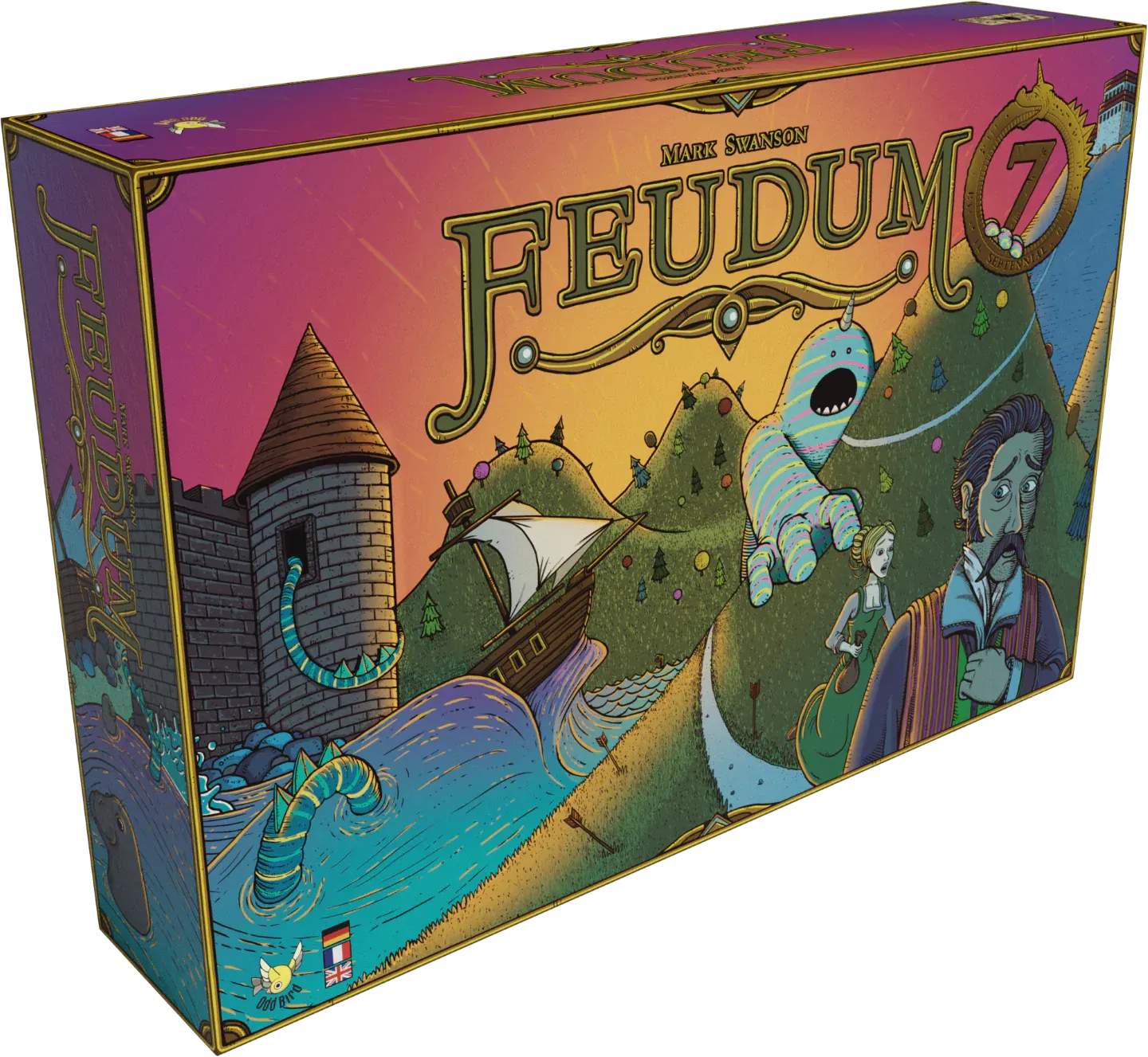 Feudum (latin for fiefdom) is an economic medieval game of hand and resource management for 1-6 players. With many strategies at their disposal, players optimize four actions per turn in attempt to score the most victory points over five epochs.