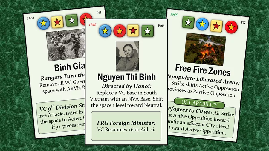 - New ARVN Strategic Hamlet pieces and mechanics reflect the Diem regime’s strategy of relocating the population into fortified villages.