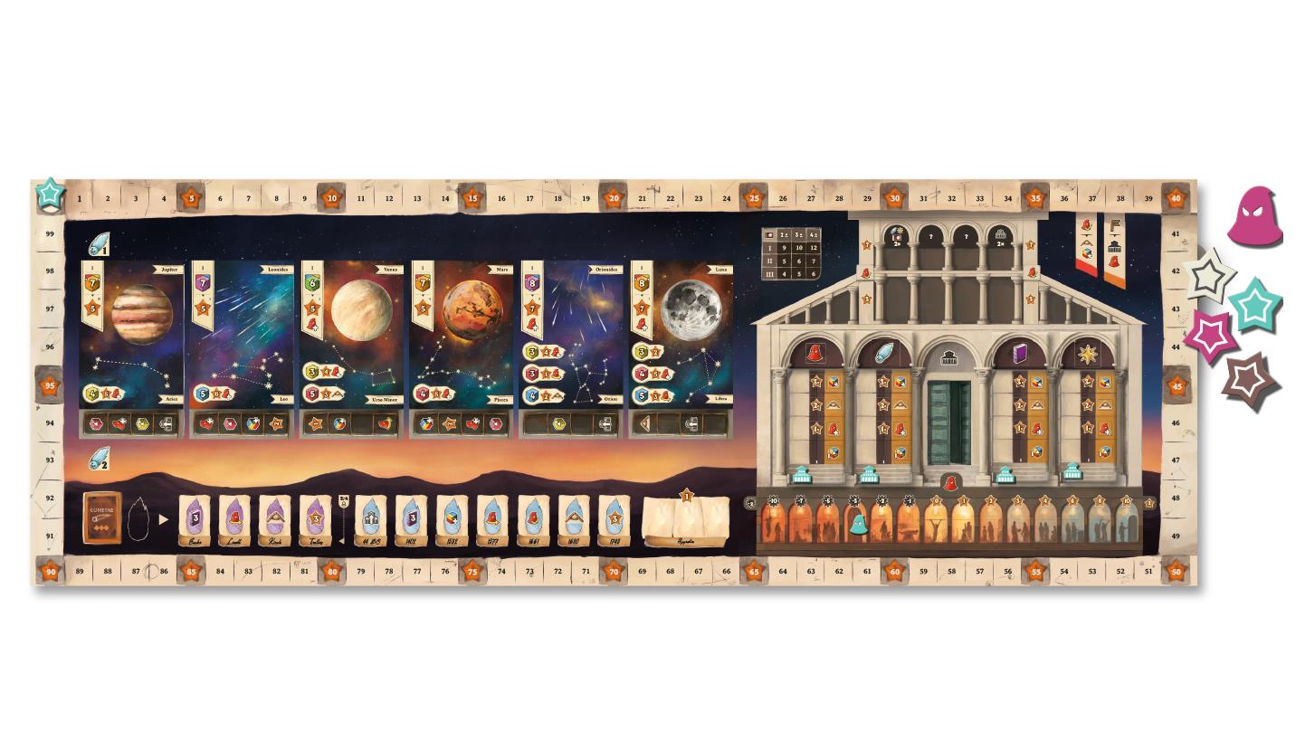 Galileo Galilei to strategiczna gra, w której szczęście odgrywa znikome znaczenie. Podstawowe mechanizmy oscylują wokół wyboru akcji oraz manipulacji kośćmi, co pozwala graczom aktywować potężne i przynoszące mnóstwo punktów kombinacje efektów.