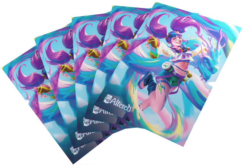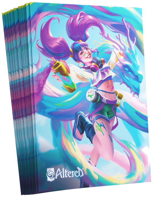 Pierwsze oficjalne, full artowe koszulki na karty do gry Altered przyciągną oko każdego fana! Chociaż zoptymalizowane są do kart z Altered, świetnie nadadzą się również do innych gier karcianych i planszowych.