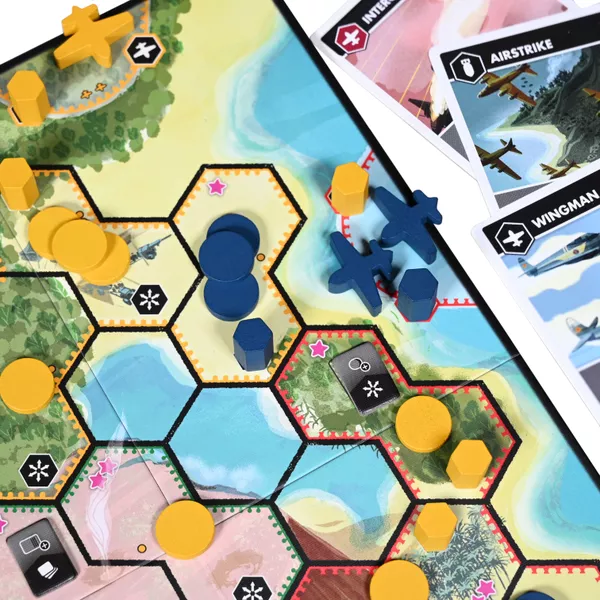 Balance the desire to gain these advantages with the need to secure supply lines, ward off aerial assault and artillery barrages, and protect your vulnerable headquarters in this compact and elegant two-player game.