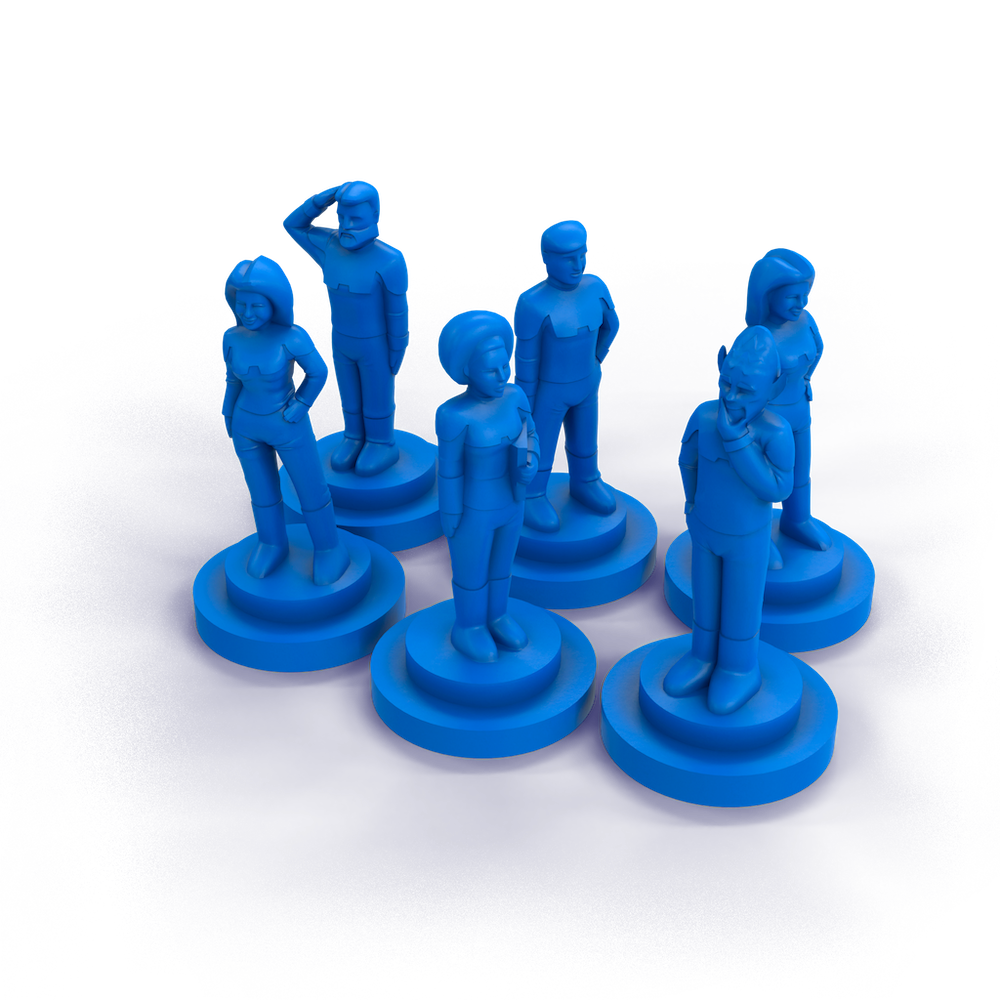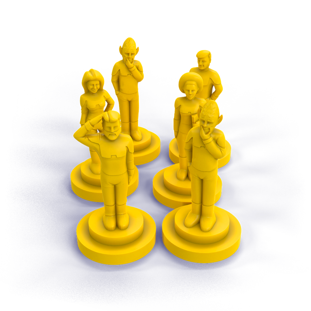 - Każdy z graczy rozpoczyna zabawę z identycznym krążownikiem oraz własną, siedmioosobową załogą.