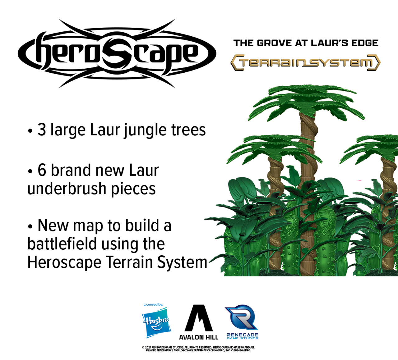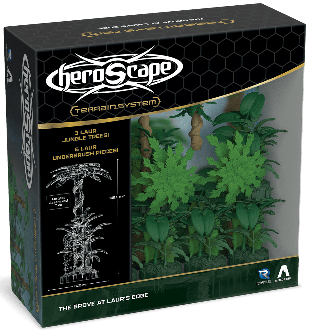 Build new jungle environments over which to battle for Valhalla in HEROSCAPE: THE GROVE AT LAUR’S EDGE. Choose your scenario, build your battlefield, select your army, and fight to win!This terrain set includes 3 Laur Jungle trees, 6 Laur Underbrush pieces, and a setup guide to maximize your use of these striking new terrain features. This set is fully compatible with all Heroscape Master Sets and Expansions!Requires Heroscape Battle Box or Master Set for Heroscape gameplay.