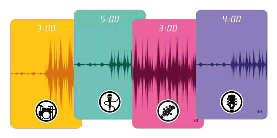 Each round represents a song recorded on the A-side of the album that will help players gather information to aid B-side recordings. After listening to all of the songs on the A-side — 6-8 rounds depending on the player count — the game ends. Whoever contributed most effectively to the construction of the tracks on the album's B-side wins.