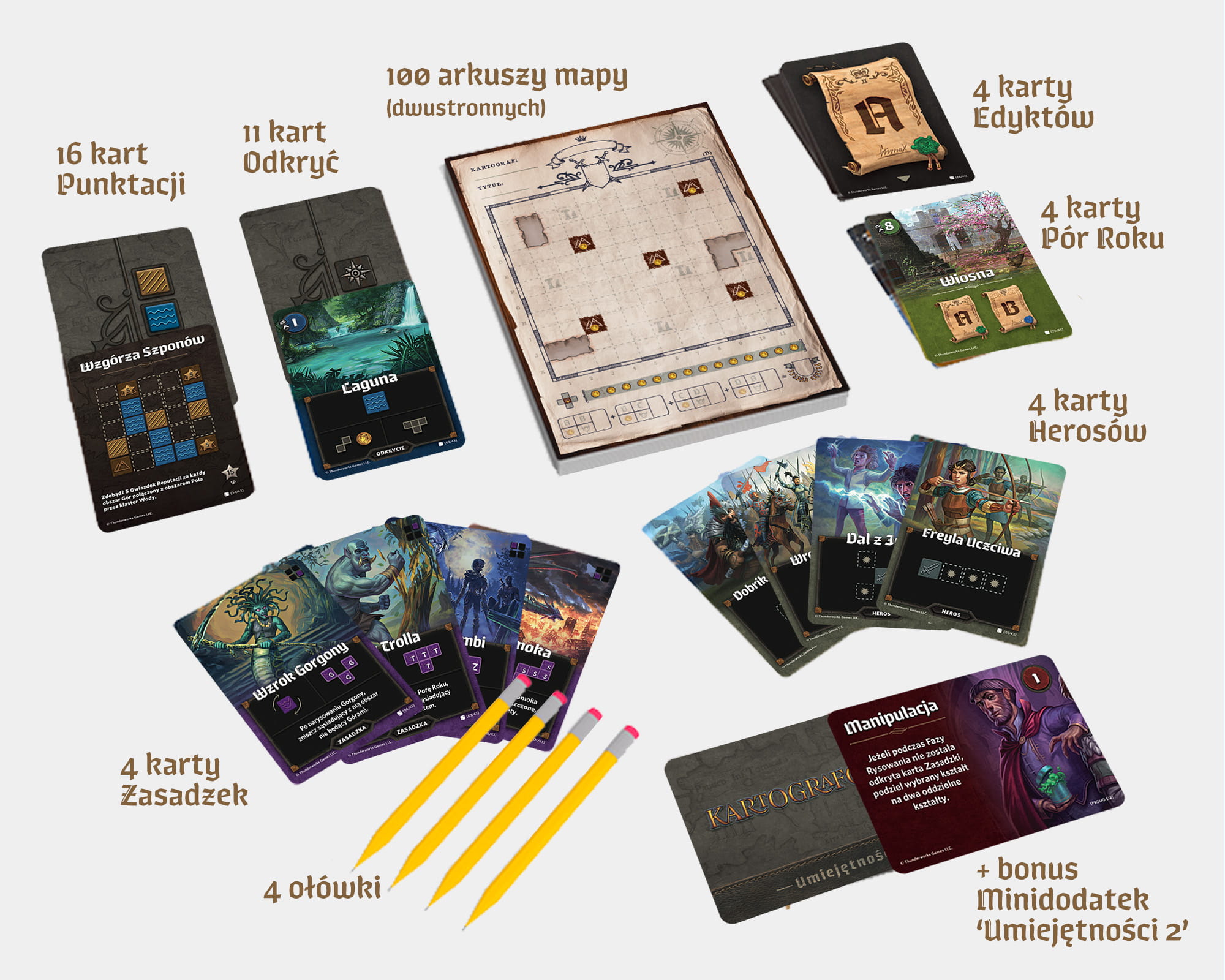 W każdym pudełku znajdują się karty mini dodatku Umiejętności 2.