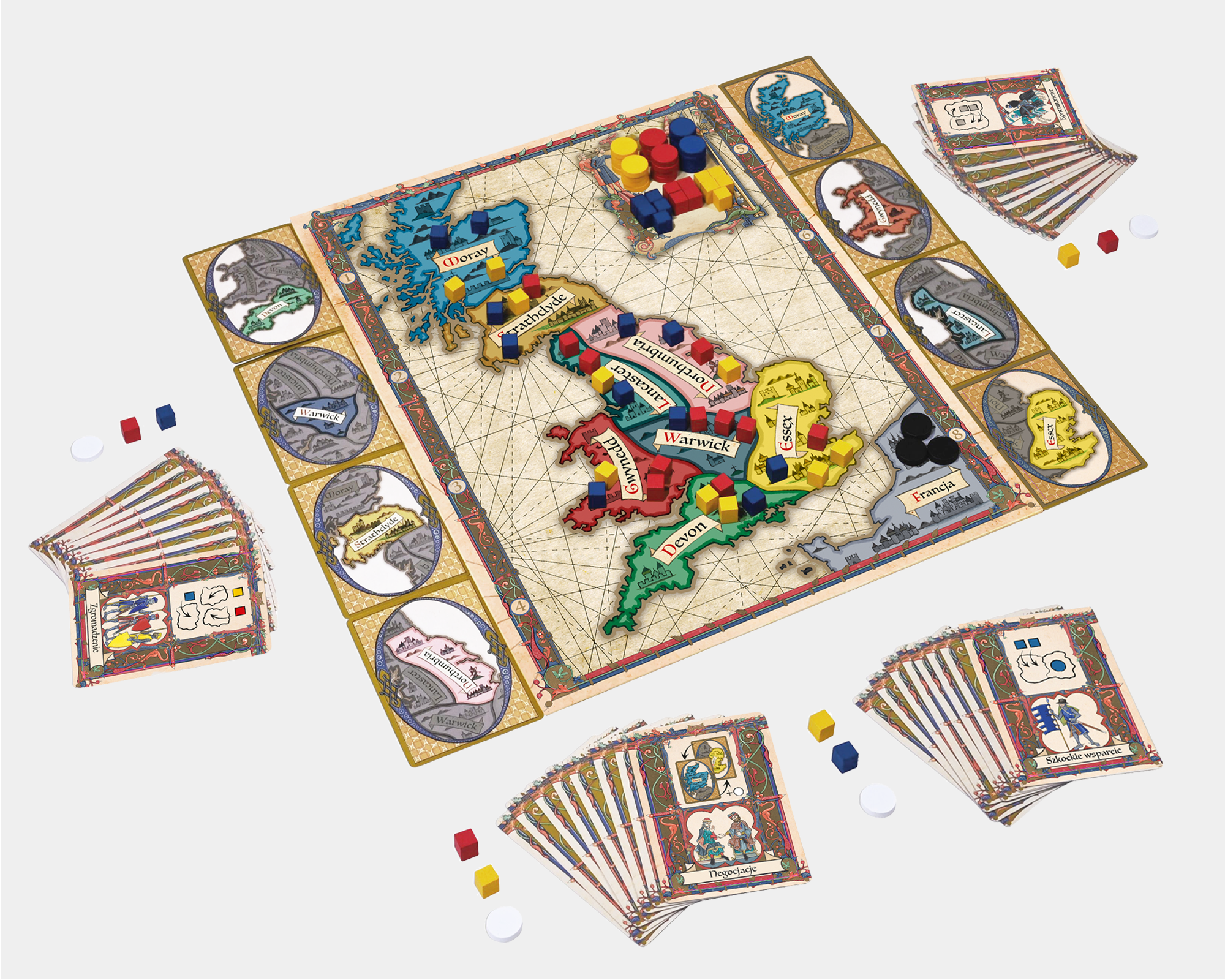 Polska edycja posiada także bardziej kompaktowe pudełko o grubości 40mm oraz poprawione kolory na planszy.