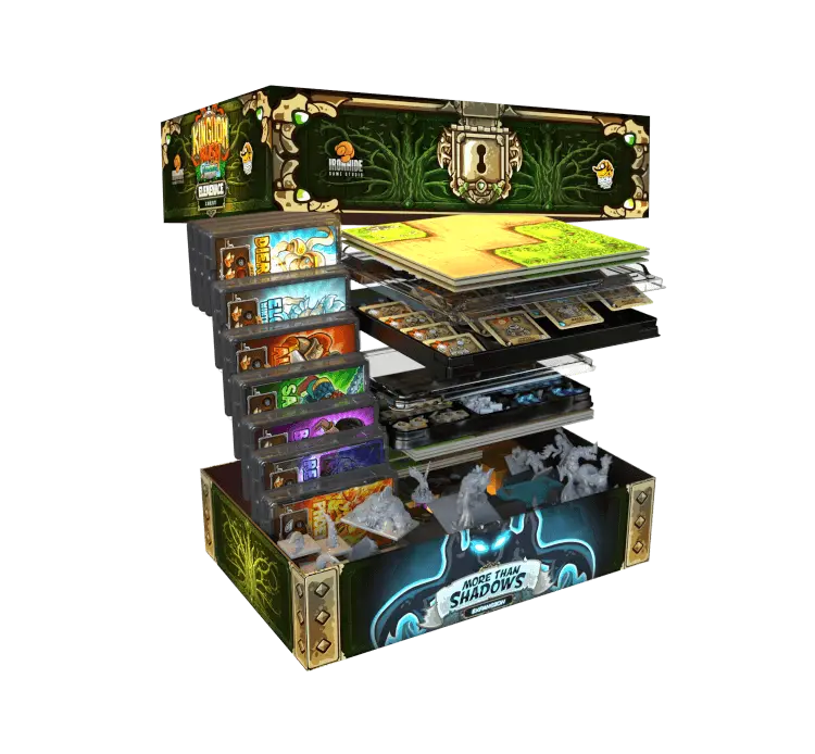 The Elemenace Hoard Pledge will be produced as a single Elemenace Chest box with all Game Trayz and components for the base game and all listed expansions pre-packed for you. If you would prefer to have each individual box please choose the Deluxe or Retail Edition Pledge and add the extra items individually.