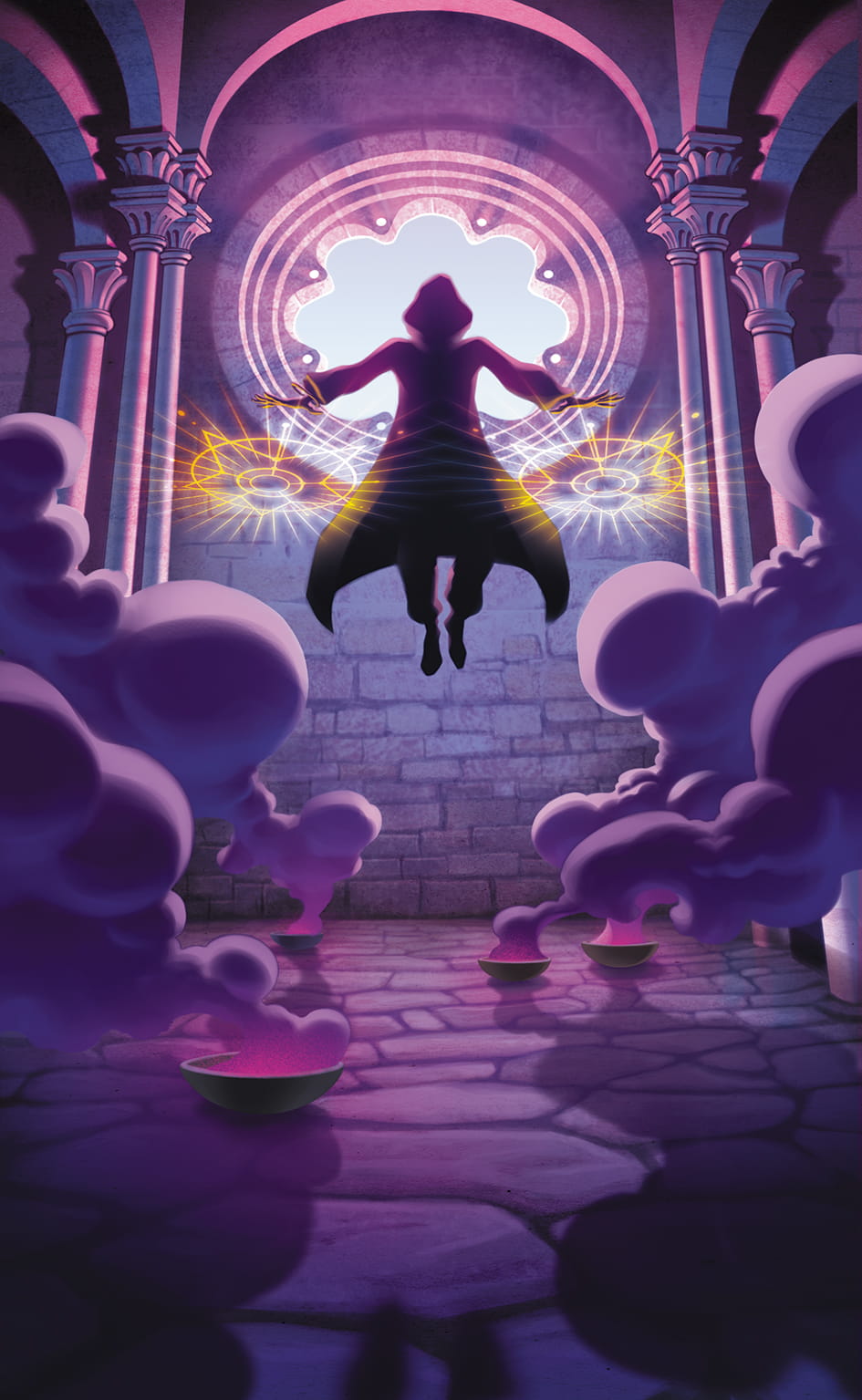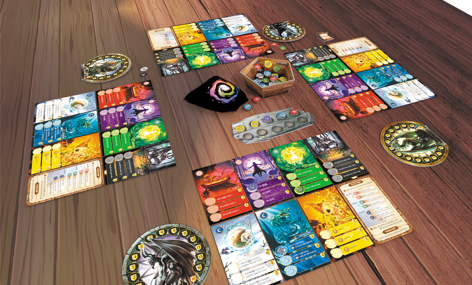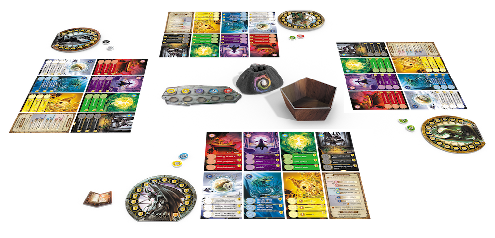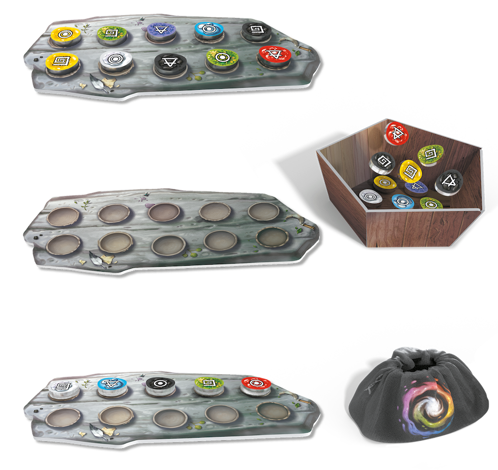 - Magowie siadają wokół wiru (przedstawionego za pomocą sakiewki), który emituje rozmaite magiczne elementy zwane materią. Niektóre z nich trafiają na ołtarz, inne pozostają wymieszane i objawiają swoją naturę dopiero po wylosowaniu.