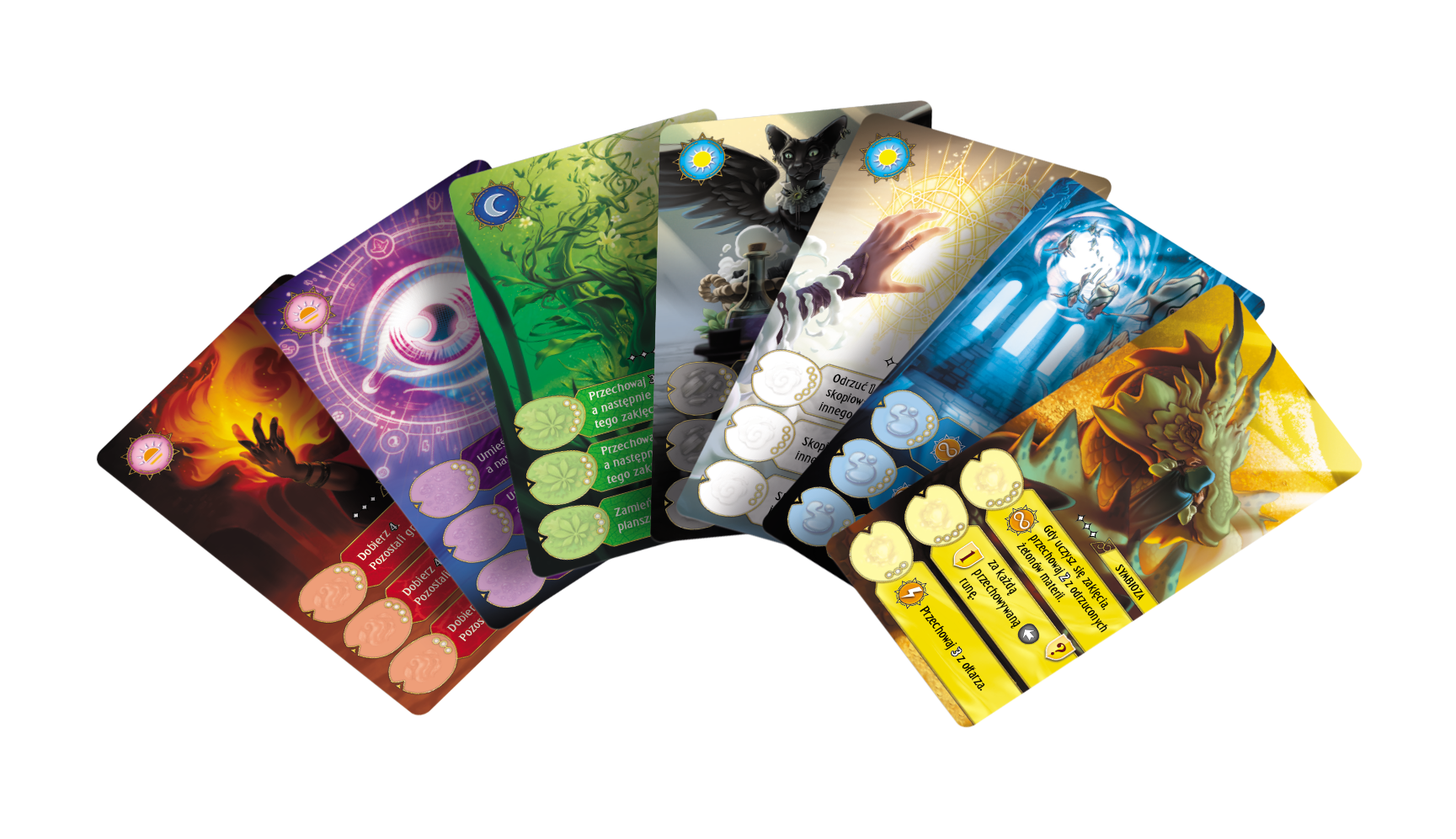 - Karty zaklęć są oznaczone trzema poziomami. Zaleca się, by przygodę z grą rozpocząć od pierwszego z nich, potem przejść do drugiego i tak dalej. Dzięki temu stopniowo poznamy zasady i zależności między efektami.