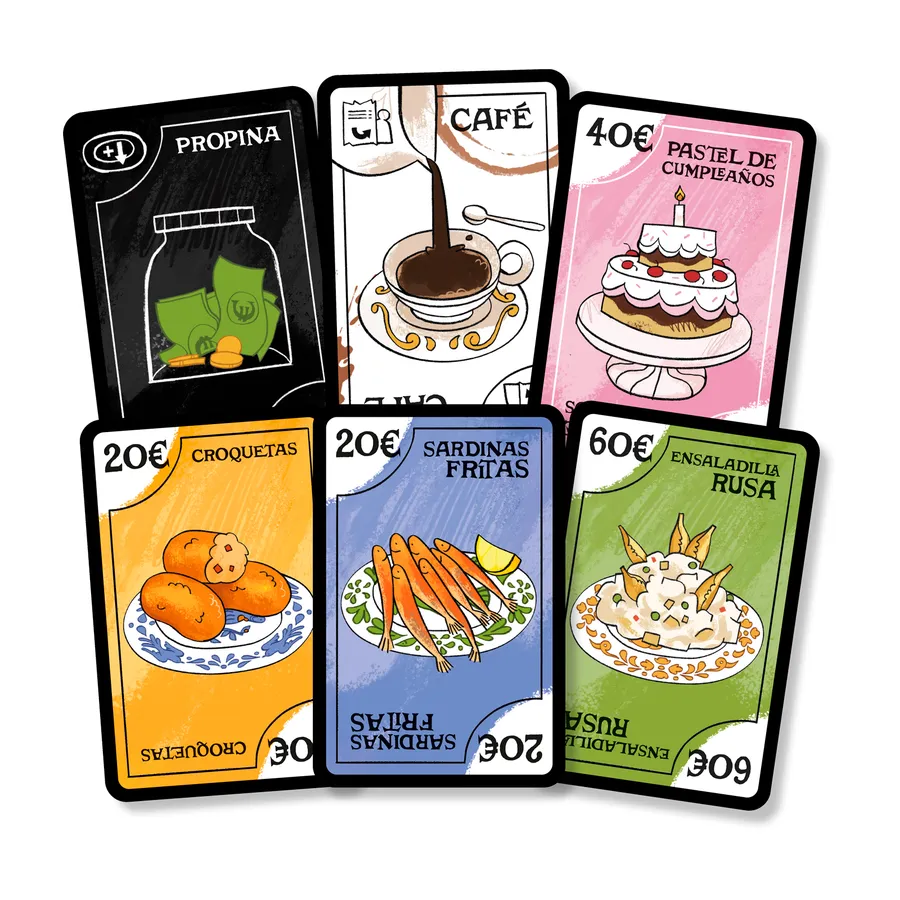 In La Cuenta ("The Bill") you go tapas bar hopping with your little group. At each bar someone will have to pay the bill - try not to be you! Inevitably, someone will run out of money. When that happens, whoever has the most money left wins.