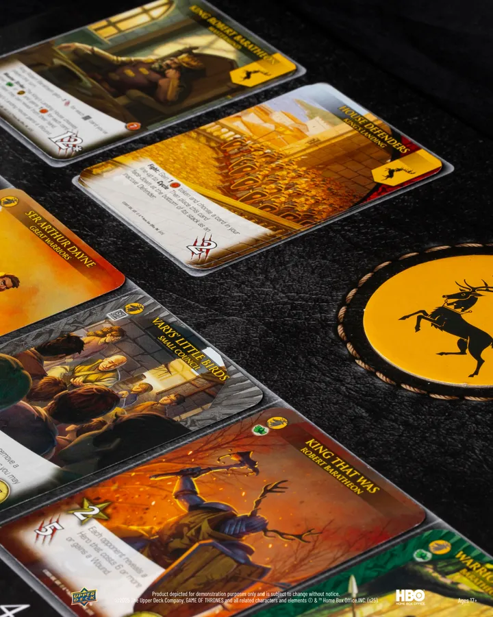 In this competitive version of Legendary, players seek to claim the ultimate prize: the Iron Throne! Take control of one of the great houses of Westeros with fan-favorite characters and locations. Brand new game content including Masterminds, Heroes, Villains, and more! All cards will contain original art based on the characters from the Game of Thrones! 550 cards, a rule book, deluxe play mat, player boards and everything you will need to play!