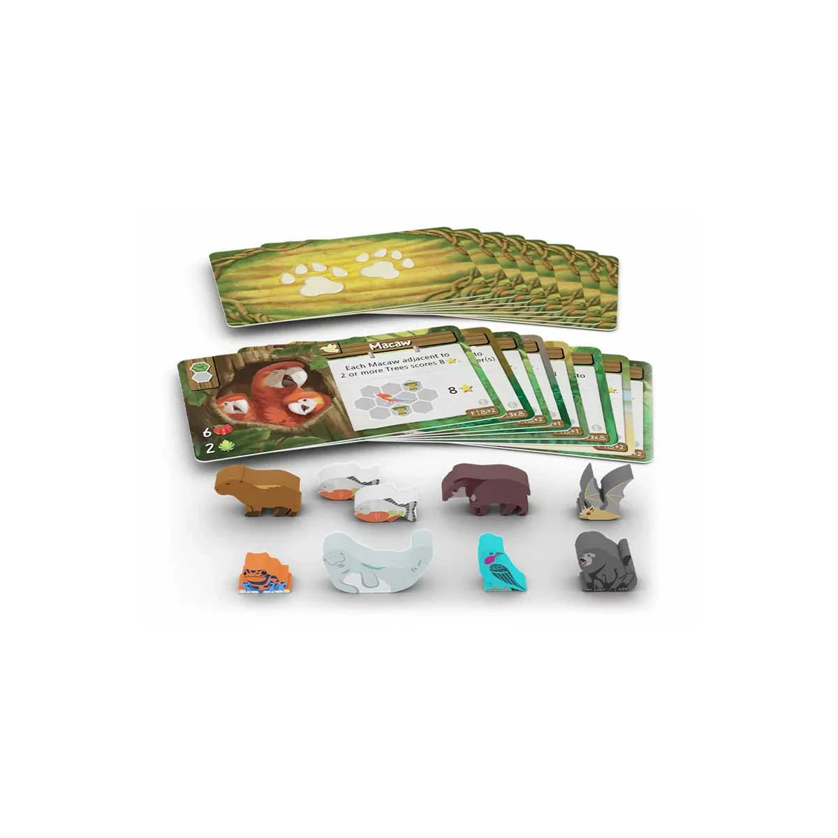 - 8 unique Animals with 8 cards and 9 wooden animals (2 Piranhas)