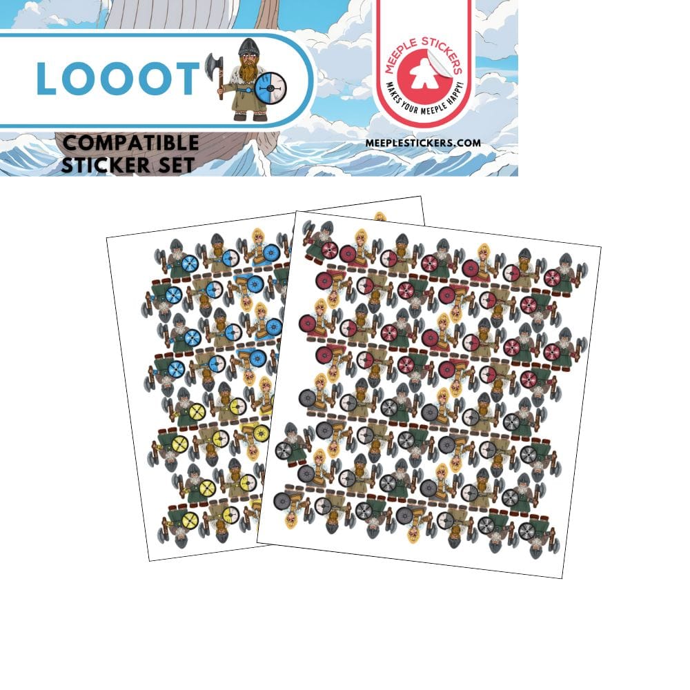 In Looot, you play as a daring Viking, conquering lands, gathering resources, and expanding your territory. However, the experience gets even better when you personalize your game pieces with our custom sticker pack. This upgrade transforms your wooden meeples into unique Viking characters, making the game much more visually appealing.