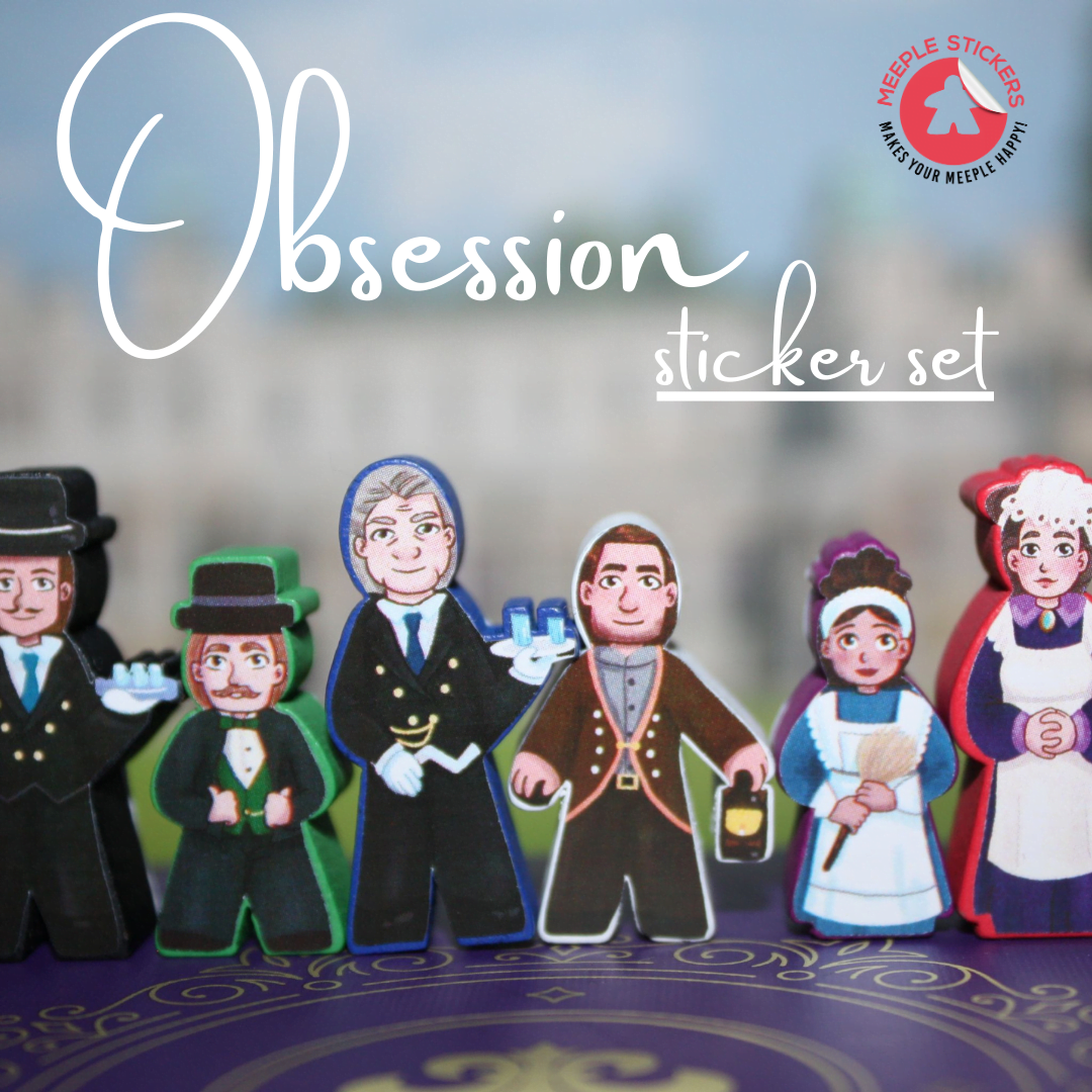 This pack contains premium quality stickers designed specifically for the Obsession boardgame. You get stickers for both sides, ensuring a complete transformation of your game pieces.
