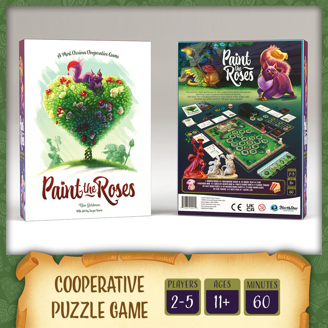 Paint the Roses is a 2-5 player cooperative logic deduction game that automatically adapts to your skill during play.