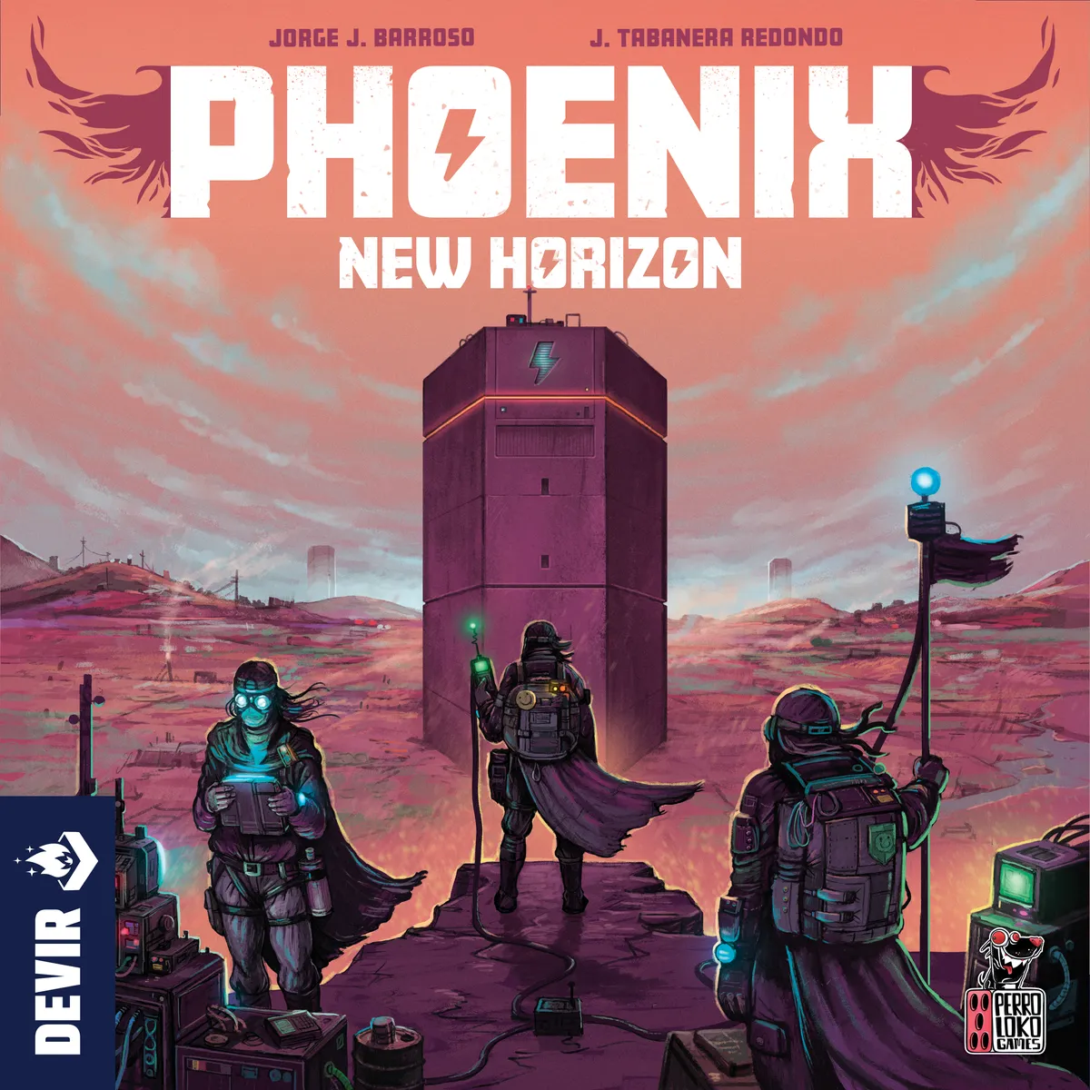 Phoenix New Horizon is a Euro-style board game in which players assume control of a team of commandos tasked with the mission of recolonizing Earth. Throughout the game's four rounds, players accumulate victory points by constructing regenerators and buildings, bolstering the planet's population, and achieving diverse objectives that vary between playthroughs.