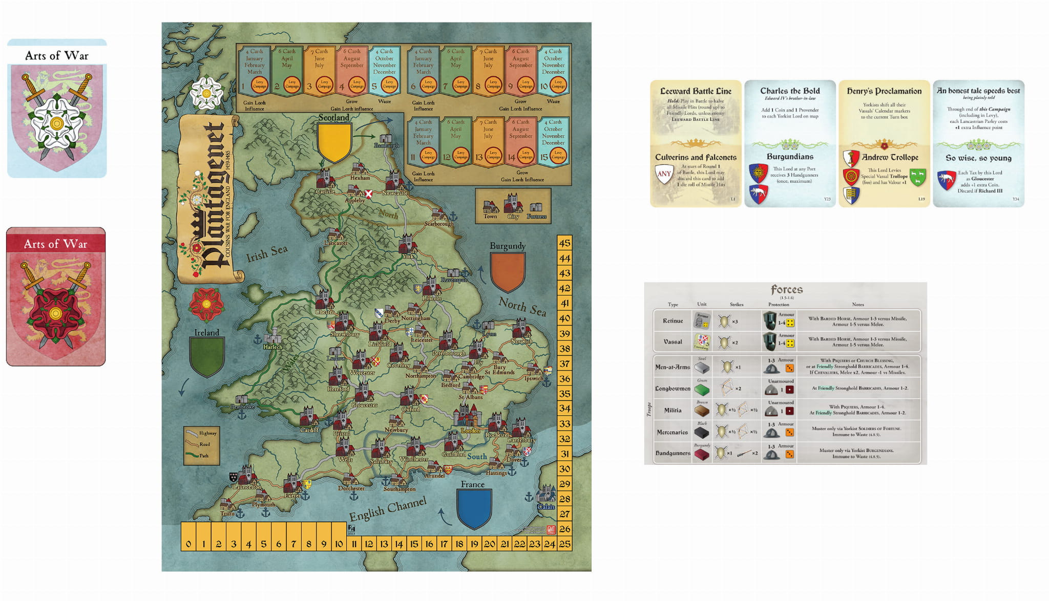 England, 1459. The son of the great Henry V has not lived to fill his father's shoes. England has lost the Hundred Years War, and mighty lords amass lands and wealth rivaling the King’s own. Henry IV left the door open for any such powerful lord with good pedigree to reach for the throne, and the best candidate is Richard Plantagenet, Duke of York.