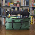 These bags are made specifically with board games in mind. They’re 12 inches wide, lovingly hold the equivalent of 7 large "Ticket to Ride" sized game boxes, and are padded to protect them. But that’s not all, every bag is weather-resistant, offers up to 4 carrying methods, a front pocket for small items like our digital scratchpad, and can fold away for when you’re not using it. And yes, they even can be used as a "normal" travel bag.