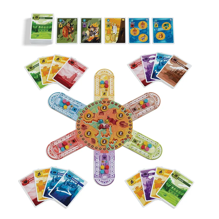 In Quorum, the players take on the role of Roman senators who share the power of Rome and its provinces with the aim of acquiring the greatest amount of influence possible. The goal is to be the most powerful and influential senator by gaining victory points, which are awarded in various areas of influence over the twelve rounds of the game.