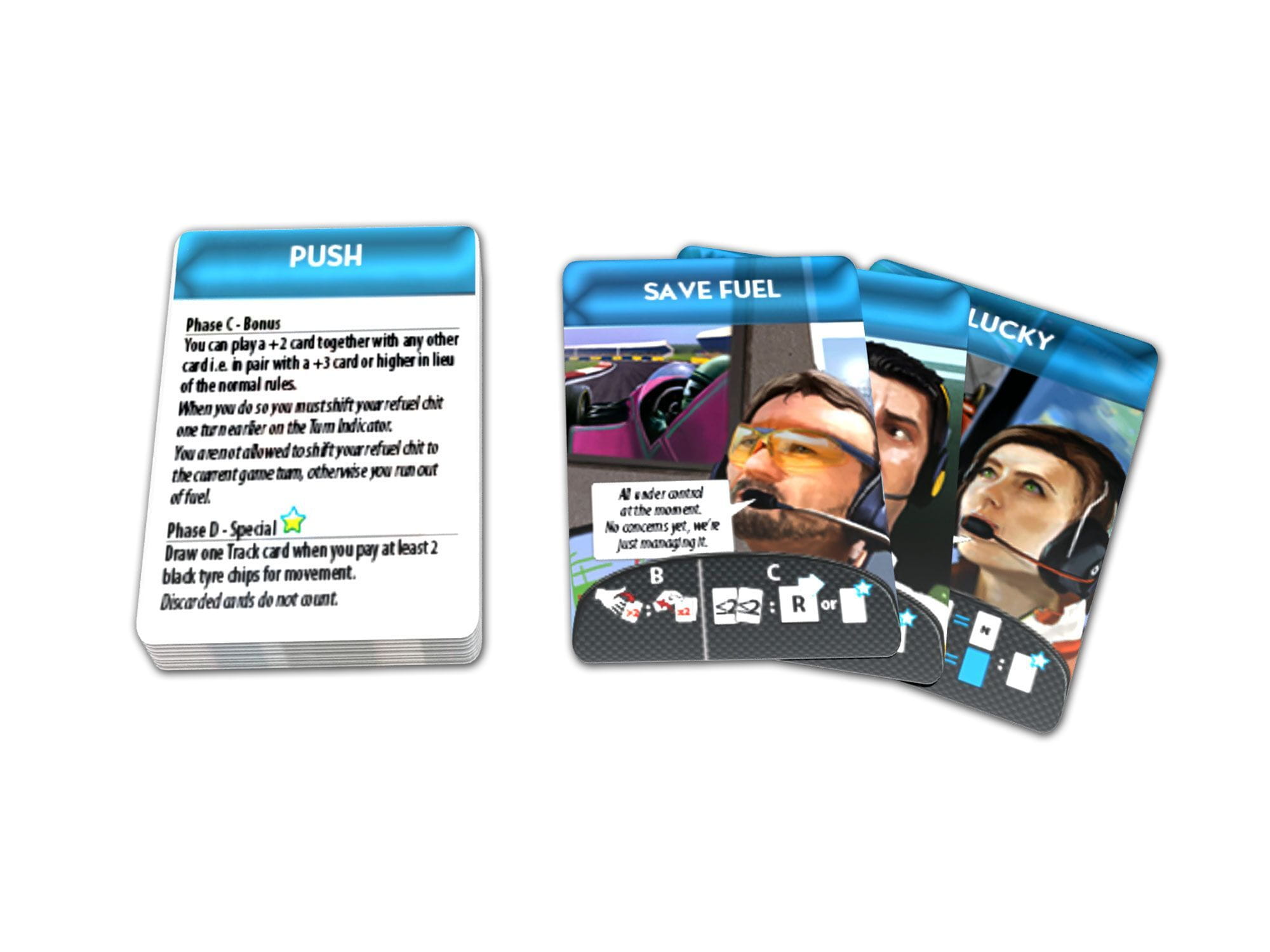 W grze, każda tura to jedno lub więcej okrążeń. Każdy z graczy kontroluje po jednym samochodzie, reszta samochodów zwanych robotami kontrolowana jest przez samą grę. Gracze posiadają w zanadrzu karty wyścigu i wykres ukazujący m.in. stan opon, uszkodzenia czy niezawodność wozu.