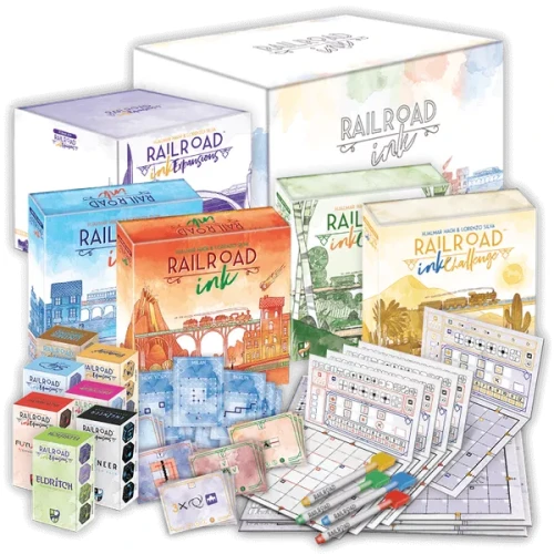 The Railroad Ink Challenge – Ultimate Collector’s Edition is finally here! With both Classic and Challenge Core games, expansions, and additional materials it has really everything you need and may desire to reach networking nirvana!