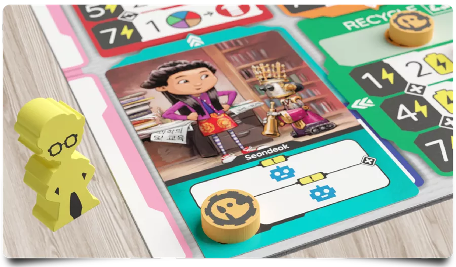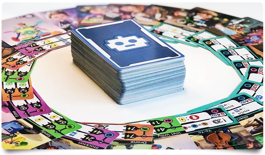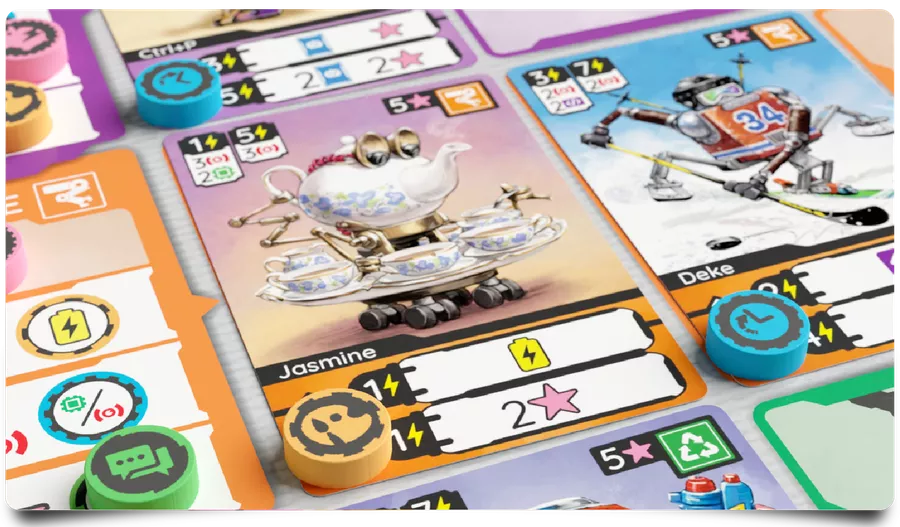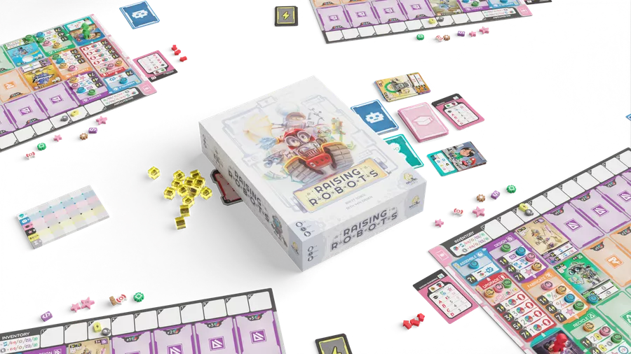 Raising Robots is a competitive, simultaneously played, engine-building game.