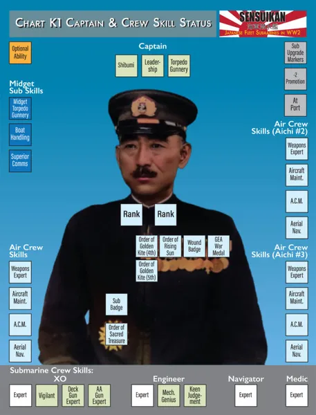 Sensuikan: Japanese Fleet Submarines, 1941-45 is a solitaire, tactical level game that places you in command of a Japanese Fleet submarine from Pearl Harbor until the end of the war in 1945. After choosing a class, your mission is to conduct special missions as assigned by the Combined Fleet. The player will take his submarine on assigned missions with the objective to complete said missions, as opposed to necessarily sinking merchant vessels (although that is sometimes an objective). You will be advancing your crew quality and increasing your commander’s rank and awards—all while remembering you have to make it home amidst diminishing odds of survival as the war progresses.