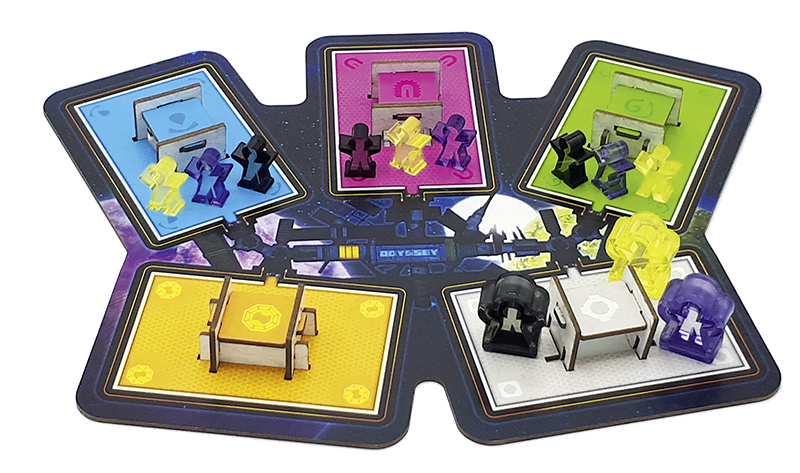 The future of humanity awaits you in Space Gate Odyssey. A system of viable exoplanets has been recently discovered and the Confederations are flocking into space to colonize it. In this 2 to 4-player development and flow-management board game, you play the leader of one of these Confederations and play your influence in the Odyssey command station to send as many of your settlers as you can on these exoplanets.
