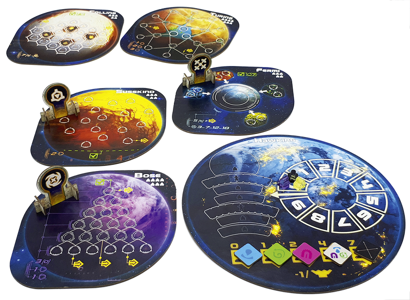 As soon as one of the three exoplanets is fully colonized, each Confederation gains influence according to its placement, then access to one of the two later discovered exoplanets becomes possible. At the end of the colonization of the five exoplanets, the stations are teleported to the Hawking planet and the influence of each Confederation is assessed. The leader of the most influential Confederation will be promoted to the rank of Governor of this new system.