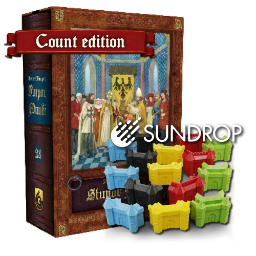 As one of Frederick II's vassals in Stupor Mundi, you will summon allies from around the Mediterranean, build structures in your castle, and promote specialists to improve your kingdom. You may improve your chances by upgrading your castles: towers house additional allies, walls store more resources, and keeps aid in managing action cards. Through a clever card-selection mechanism, you will have to choose actions carefully, some of which will trigger edicts that affect Frederick's palace, and determine the rewards players may receive from their allies. Do you stay loyal to the Emperor, or do you support independent allies? Keep a close eye on what your opponents do and form alliances at the right time — or go your own way when things get too heated...