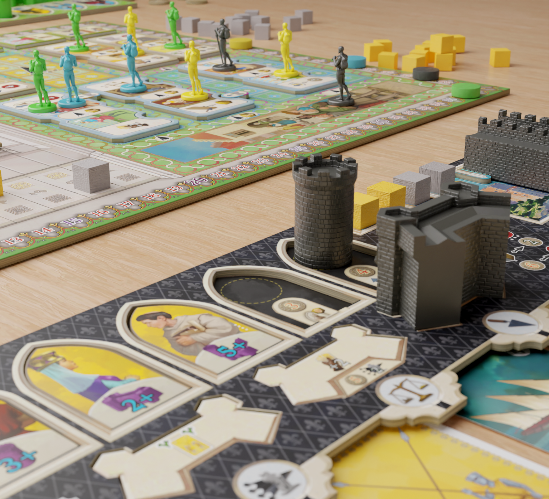 - The double-layered Player boards and Castle boards.