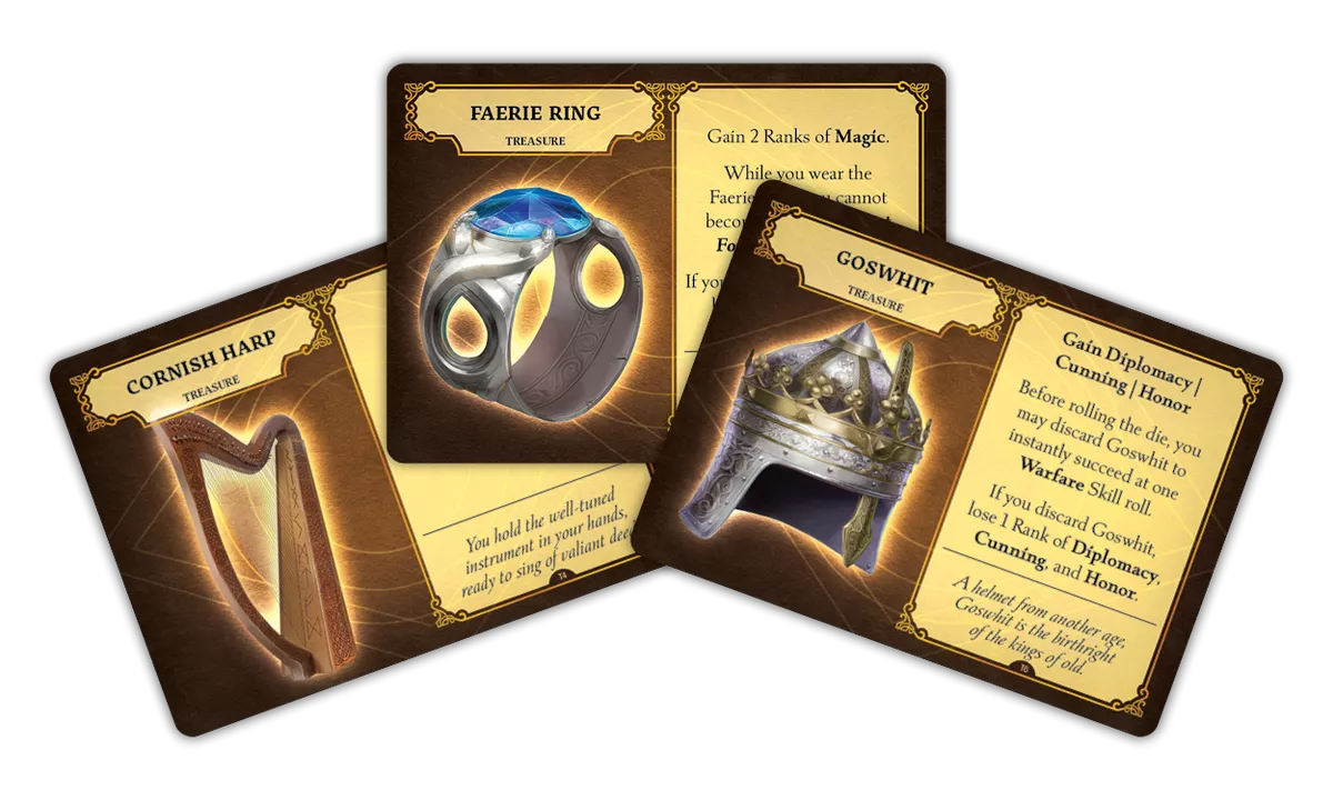 In Tales of the Arthurian Knights, you are a hero or heroine in a story of adventure and awe! You and your fellows will travel the land at the behest of the renowned King Arthur. Through a series of quests, you will make impactful choices that will steer the course of your journey. Secure your place in history by achieving glorious feats, lest your efforts be doomed to obscurity. Gather your band of Knights around the table to enjoy your own epic tale as it unfolds!