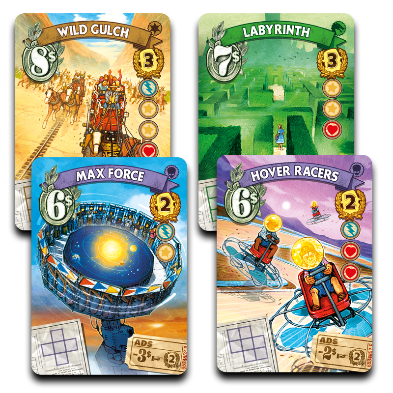 At dawn, the trumpets sound, Mayor Tenpenny’s shovel breaks ground, and the race is on! You have five months to transform the humble town of Fairview into the home of the world’s greatest theme parks.