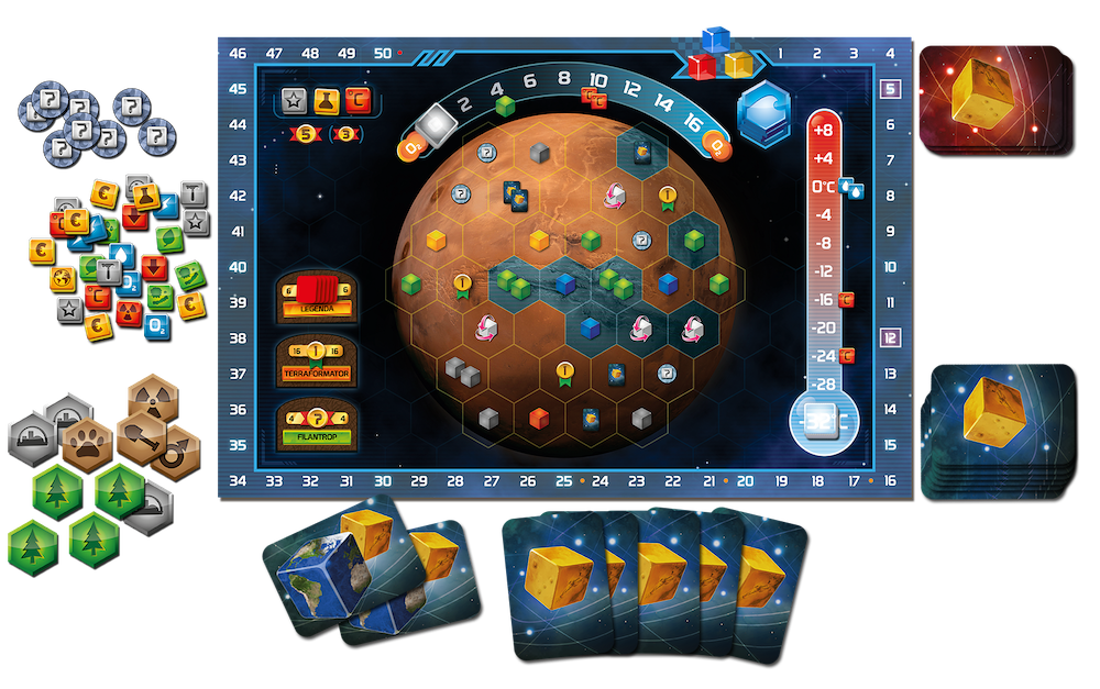 - Mechanizm gry opiera się zarówno na kartach, jak i kościach. Uczestnicy będą rozwijać swoje korporacje i terraformować Marsa, przekształcając tę planetę w nowy dom dla ludzkości.